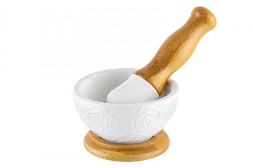 Ступка 9*9*5,5 см 100 мл "Розы" + пестик на дер. подставке
