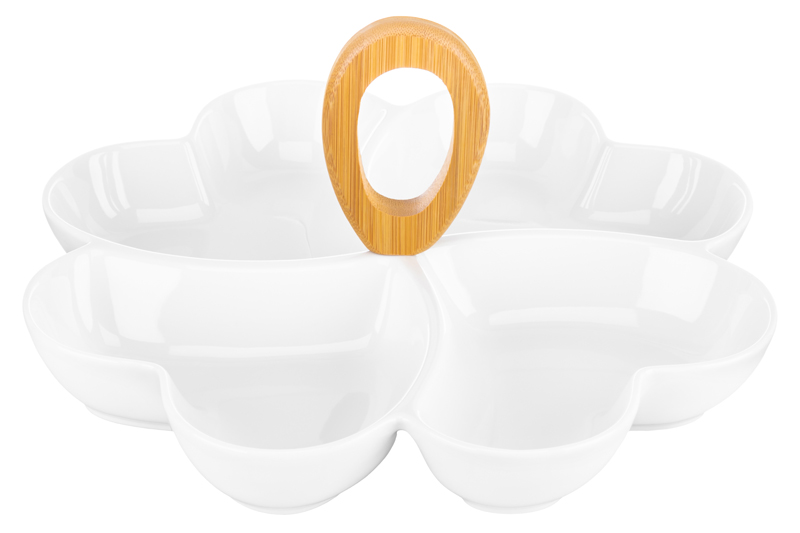 Менажница 30*30*15 см "Сердца" цельная 4 секции + дерев. ручка