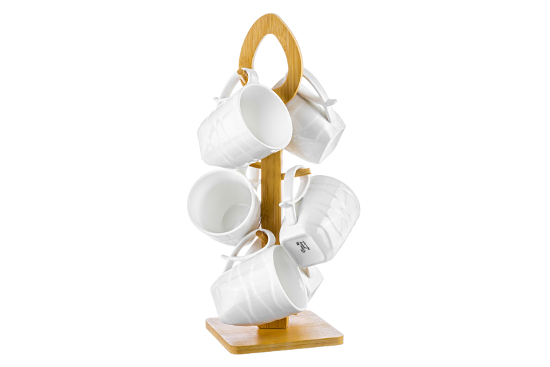 Набор 6 кружек 300 мл 16*18*38 см "Айсберг волны" на дерев. подставке с ручкой