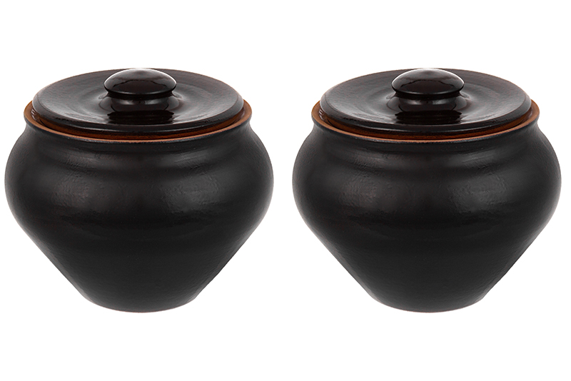 Набор 2 горшков 0,9 л 14,5*14,5*12,5 см "TerraCotta" с крышкой для запекания черный
