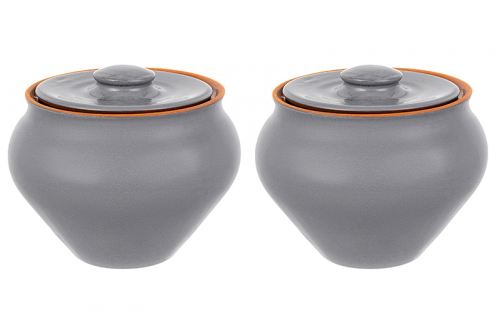 Набор 2 горшков 0,9 л 14,5*14,5*12,5 см "TerraCotta" с крышкой для запекания серый