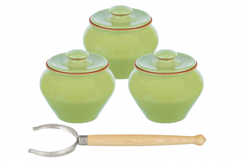 Набор 3-х горшков 600 мл 12,5*12,5*12 см "TerraCotta" с ухватом салатовый