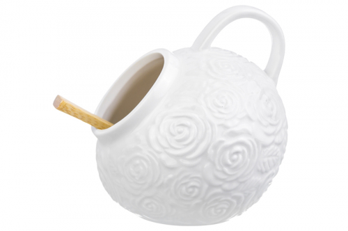 Сахарница 400 мл 15,3*11,5*10,5 см "Розы" + ложка + крышка на дер. подставке