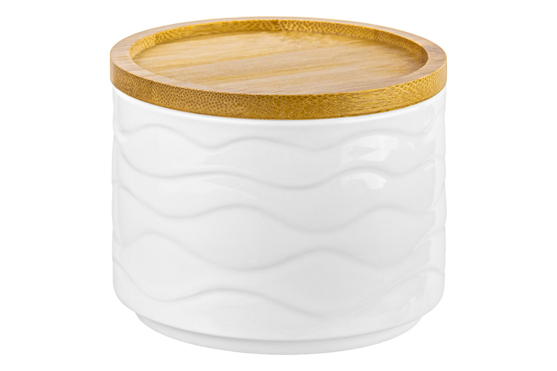 Банка д/хранения 250 мл 9,3*9,3*7 см "Айсберг волны" + дер. крышка-подставка с сил. упл.