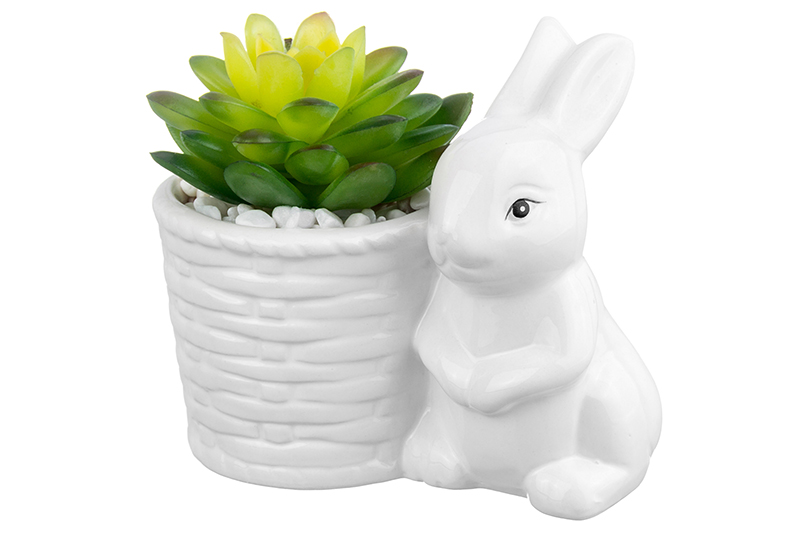 Кашпо-фигурка 11*7,5*10 см "Зайчик с цветком"