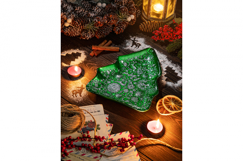 Блюдо 24*19*2,5 см "Елочка" зеленое с серебристым орнаментом