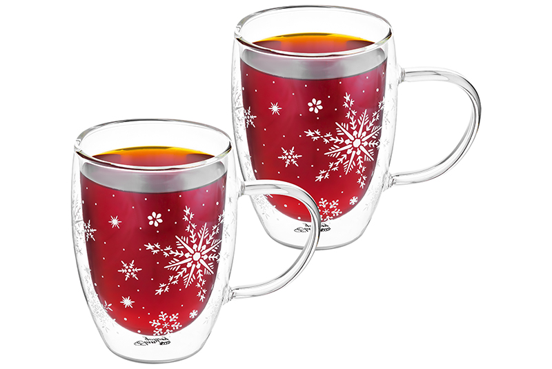 Набор 2 кружек 350 мл 13,3*9*11,5 см "Снежинки" с белым узором и двойными стенками, стекло