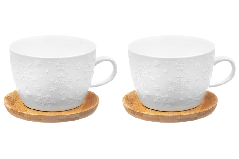 Чашка для капучино и кофе латте 500 мл "Снежинки" + дерев. подстав. (2 шт.)