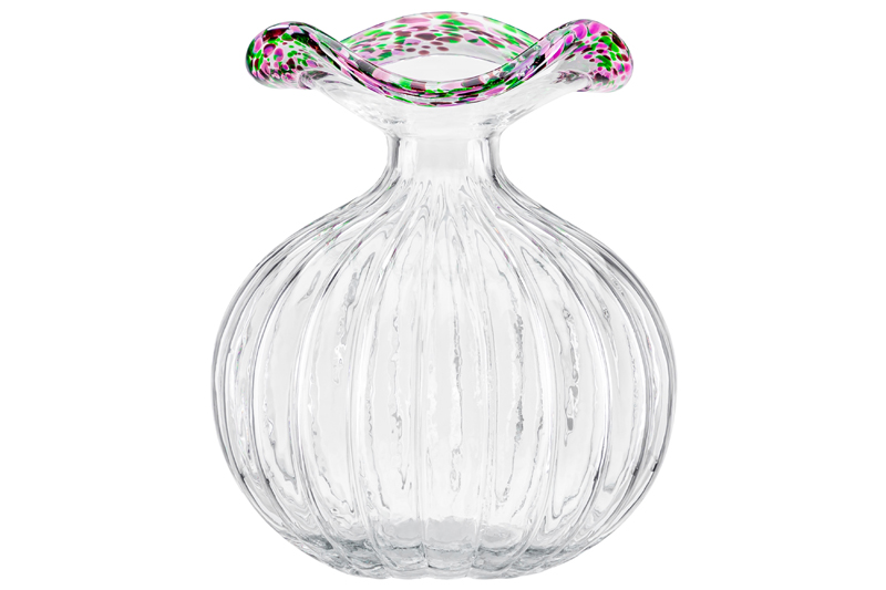 Ваза 21*21*24,5 см прозрачная с разноцветным ободком, стекло