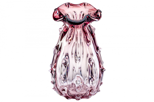 Ваза 23*23*29 см розово-прозрачная/омбре, стекло