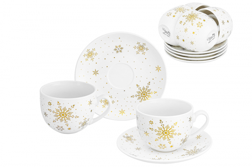 БЫЛО 3199 руб! Чайн. наб. 12 пр. 240 мл "Золотые снежинки" с золотом NEW BONE CHINA