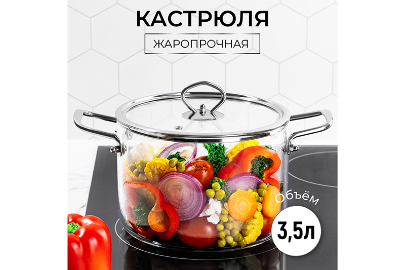 БЫЛО 3130 руб! Кастрюля 3,5 л 30*20*17,5 см "Crystal glass" с крышкой