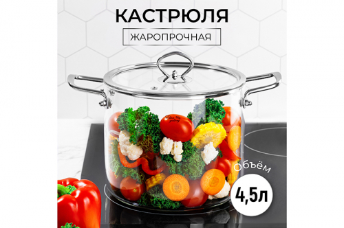 БЫЛО 3315 руб! Кастрюля 4,5 л 30*20*20,5 см "Crystal glass" с крышкой
