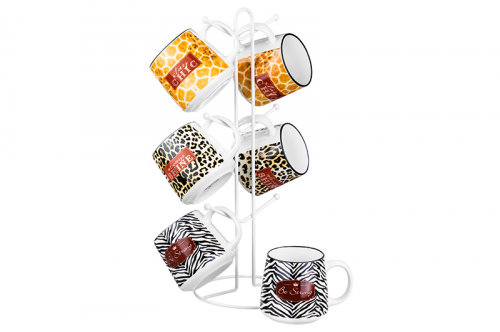 БЫЛО 3301 руб! Набор 6 кружек 340 мл "Сафари: леопард"+"Сафари: жираф"+"Сафари: зебра"на металлич.подст.