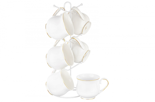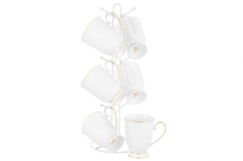 БЫЛО 2665 руб! Набор 6 кружек 300 мл "Снежана" на ножке, золотой ободок, на мет.подст. 15*15*41,5 см