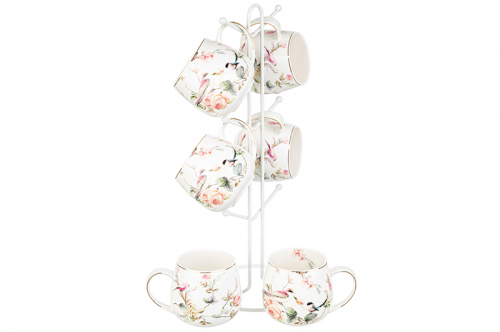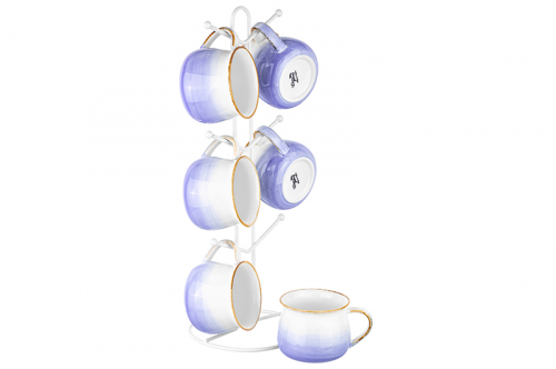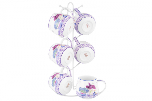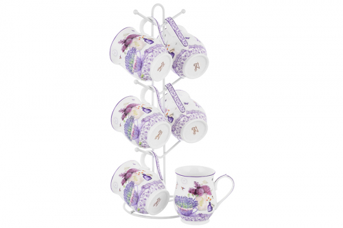 БЫЛО 3319 руб! Набор 6 кружек 250 мл "Кантри" фиолетовый, на металлической подставке 15*15*41,5 см