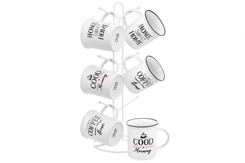 БЫЛО 2029 руб! Набор 6 кружек 310 мл "SWEET HOME" + "COFFEE TIME" + "GOOD MORNING" на металлич.подст. 15*15*41,5 см