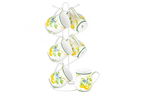 БЫЛО 3223 руб! Набор 6 кружек 350 мл "Лимоны" на металлической подставке 15*15*41,5 см, бочонок