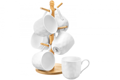 БЫЛО 5093 руб! Набор 6 кружек 360 мл "Консонанс" белый матовый, на бамбуковой подставке 16,3*16,3*34,5 см
