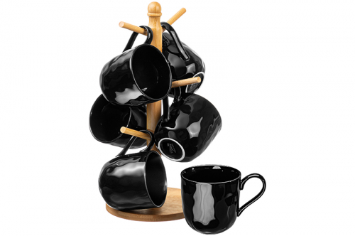 БЫЛО 4835 руб! Набор 6 кружек 360 мл "Консонанс" черный глянец, на бамбуковой подставке 16,3*16,3*34,5 см