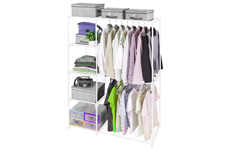БЫЛО 4187 руб! Стеллаж с вешалкой универсальный 115*50*170 см "Белый" с 4 полками
