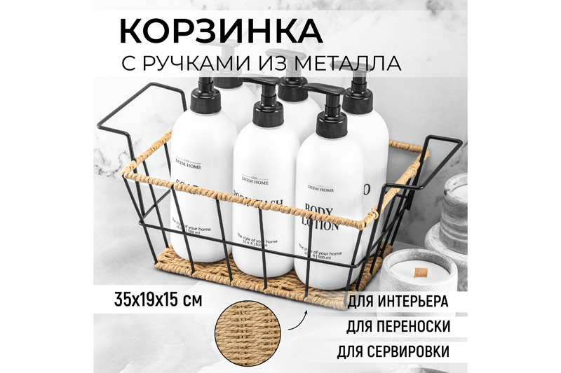 БЫЛО 920 руб! Корзинка 35*19,5*15 см с металлическими ручками, многофункциональная