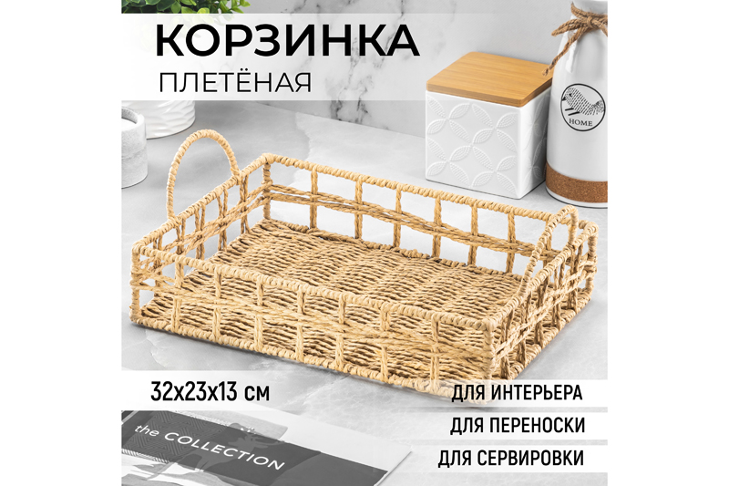 БЫЛО 640 руб! Корзинка-поднос плетеная 32*23*13 см с ручками