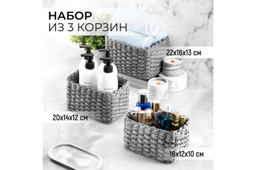 БЫЛО 749 руб! Набор 3 плетеных корзинок 18*18*15 см, серый