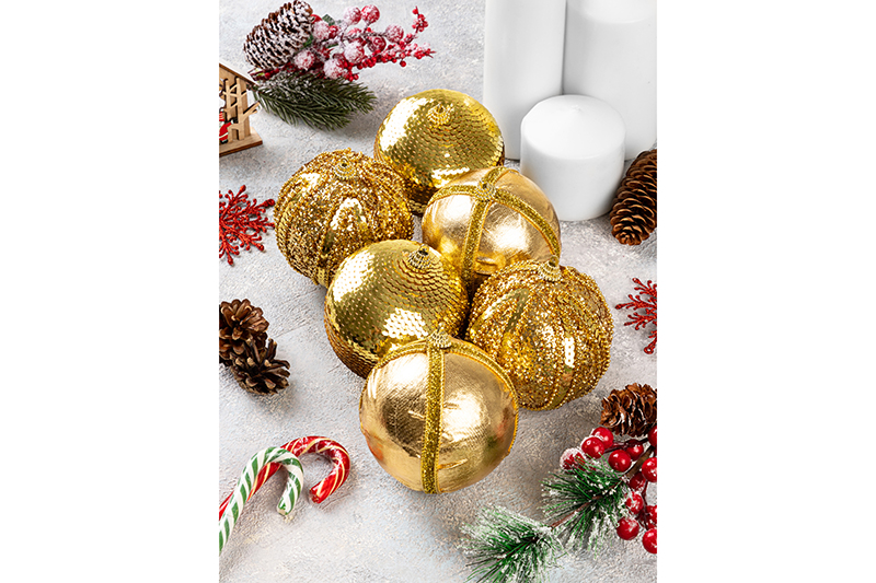 Набор 6 новогодних шаров 9,5*9,5 см "Золотое ассорти"