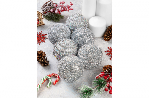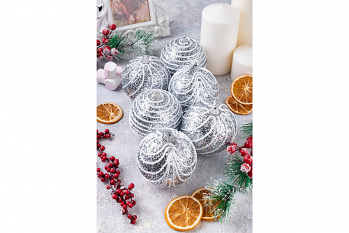 Набор 6 новогодних шаров 9,5*9,5 см "Серебряный узор"