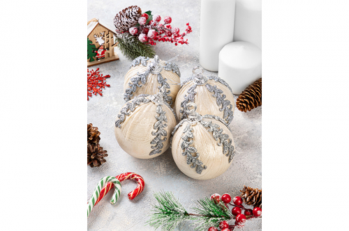 Набор 4 новогодних шаров 10*10 см "Акцент" шампань