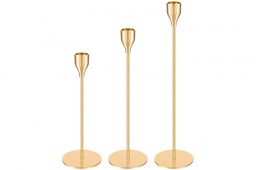 Набор 3 подсвечников 8*8*22 см, 8*8*27 см, 8*8*32 см "SUNSHINE" золото (114-422)