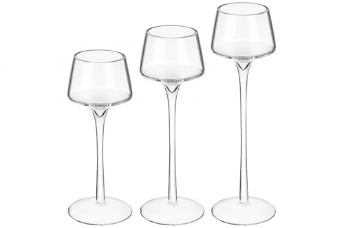 Набор 3 подсвечников 8*8*20 см, 8*8*23 см, 8*8*26 см "Krispy" стекло (114-302)