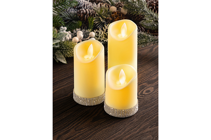Сувенир с подсветкой 3 пр. 5,5*5,5*7 см, 5,5*5,5*10 см, 5,5*5,5*12,5 см "Свеча - Блестящая сказка"