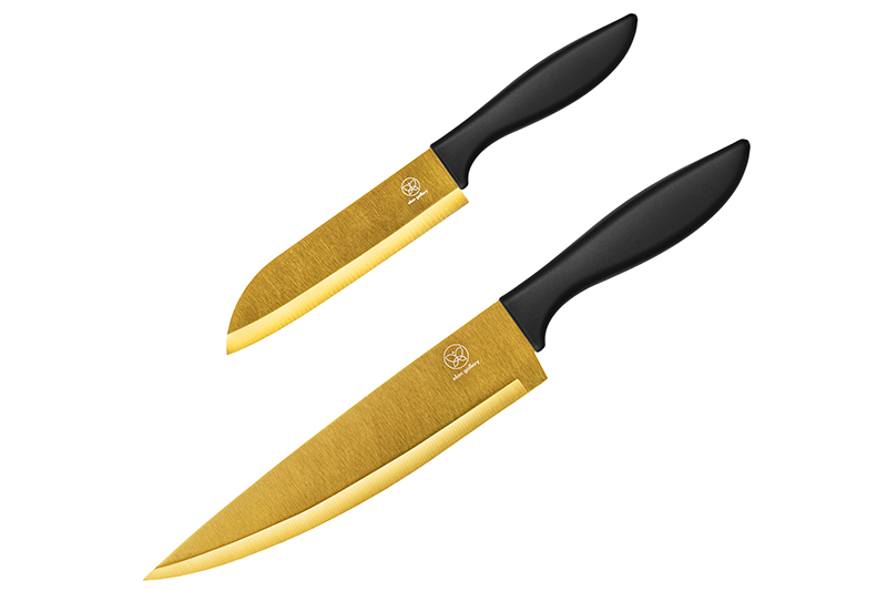 Набор 2 ножей 24*1,6*3,5 см + 33,8*2*5 см "Золото" с защитными пластиковыми чехлами