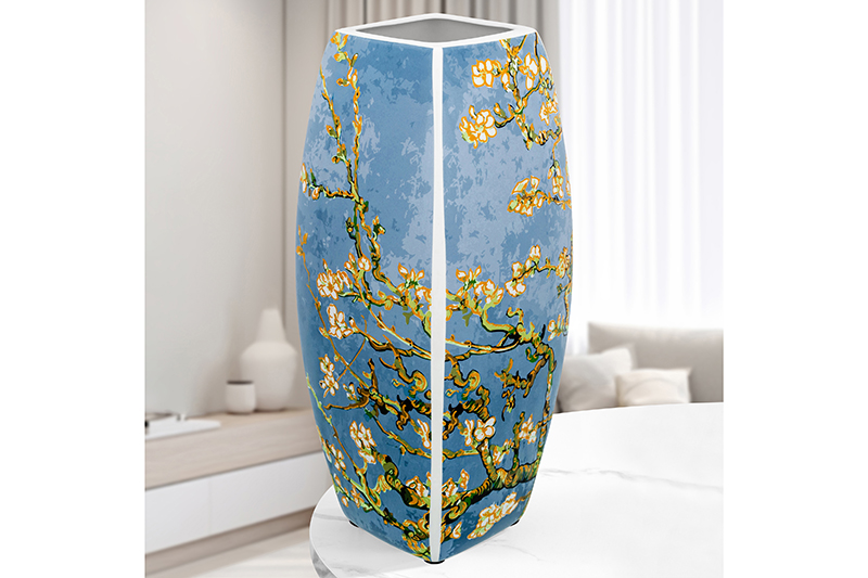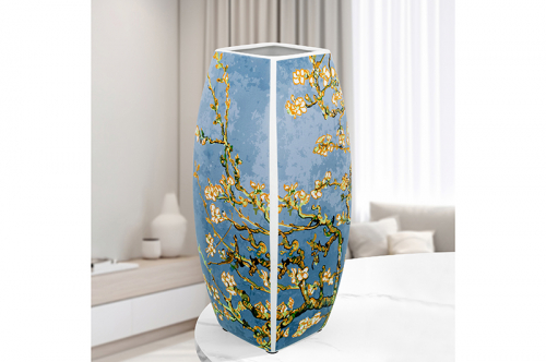 Ваза 3,15 л 12,5*12,5*30 см "Цветущий миндаль" квадрат, NEW BONE CHINA