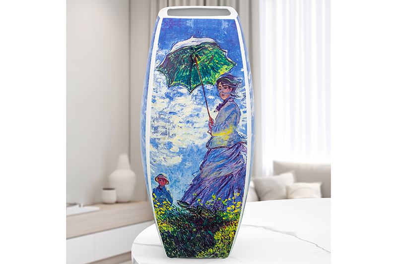 Ваза 1,5 л 11*11*21 см "Дама с веером" квадрат, NEW BONE CHINA