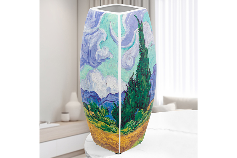 Ваза 3,15 л 12,5*12,5*30 см "Пшеничное поле с кипарисами" квадрат, NEW BONE CHINA
