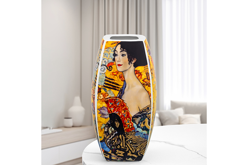 Ваза 1,5 л 11*11*21 см "Дама с веером" квадрат, NEW BONE CHINA