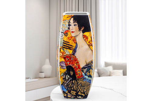 Ваза 3 л 12,5*12,5*28 см "Дама с веером" квадрат, NEW BONE CHINA