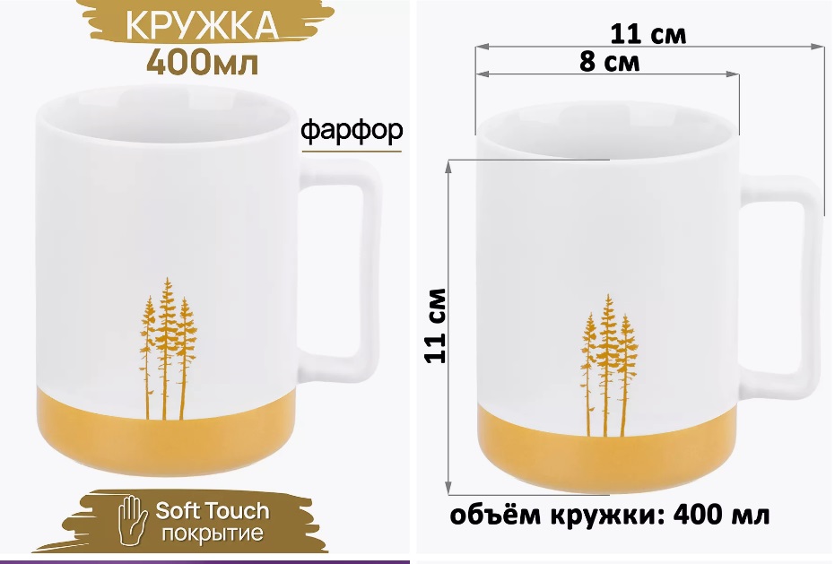 Кружка 400 мл 11*8*11 см "Наедине с природой" охра NEW BONE CHINA