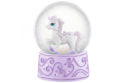 Фигурка декор. 10*10*13,5 см "Стеклянный шар с единорогом", сиреневая подставка