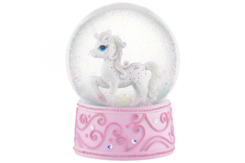 Фигурка декор. 10*10*13,5 см "Стеклянный шар с единорогом", розовая подставка