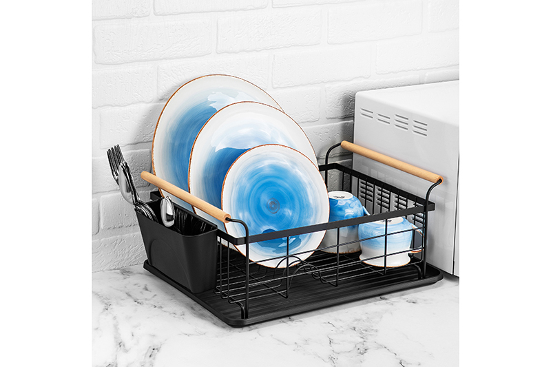 БЫЛО 1996 руб! Сушилка для посуды 43*32*19 см "Черная" с деревянными ручками, с поддоном
