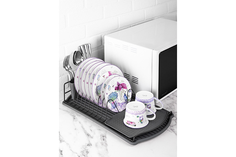 БЫЛО 1595 руб! Сушилка для посуды 47,5*26,5*11 см "Серая" с поддоном