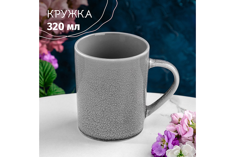 БЫЛО 310 руб! Кружка 320 мл 11,5*8*10 см "Серый меланж" NEW BONE CHINA