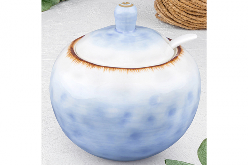 БЫЛО 775 руб! Сахарница 380 мл 10,2*10,2*10,5 см "Кантри" + ложка, небесно-голубая