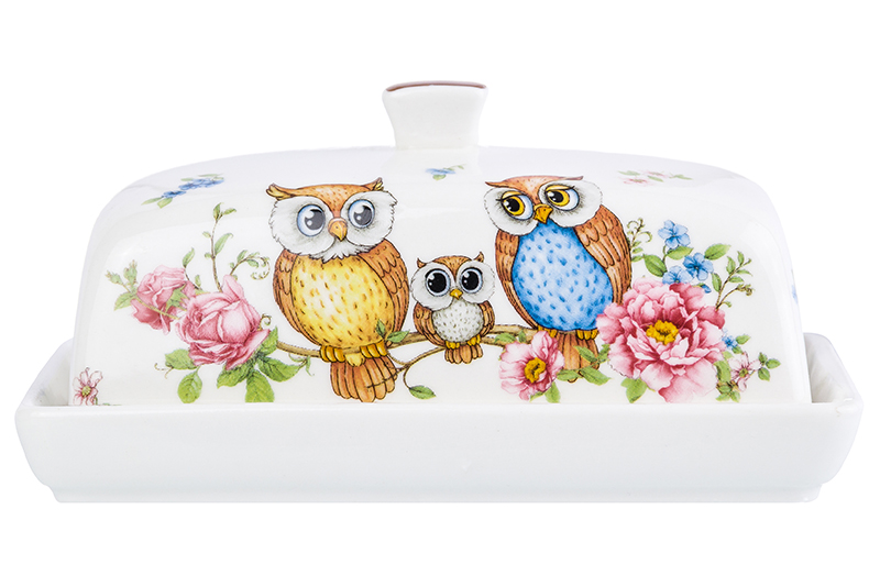 БЫЛО 625 руб! Масленка 13,5*9*6,5 см "Совушки" NEW BONE CHINA