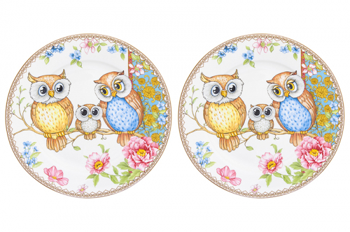 БЫЛО 1495 руб! Набор тарелок 2 пр. 26*26*2 см "Совушки" NEW BONE CHINA