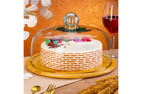 БЫЛО 3391 руб! Блюдо сервировочное на ножке 31,5*31,5*28,5 см + стеклянная крышка